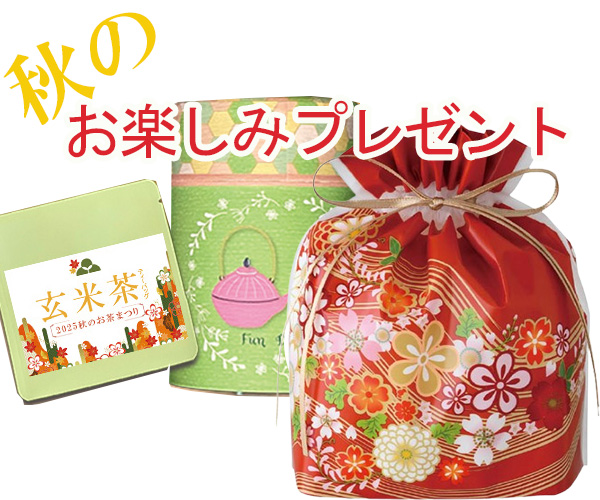 ★秋の玄米茶ティーバッグ 5パック かわいいラッピングバッグ入